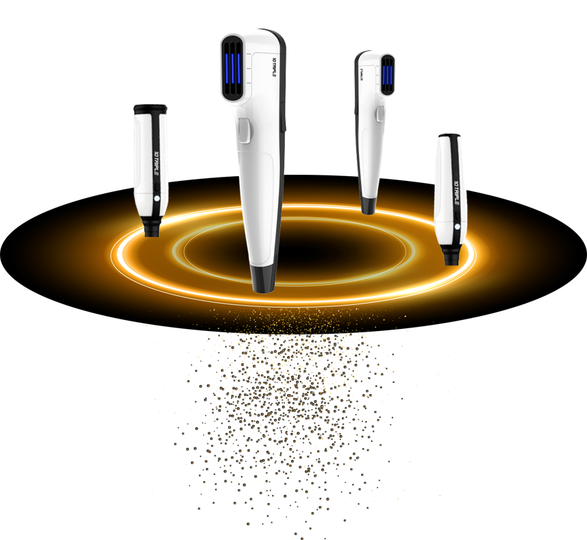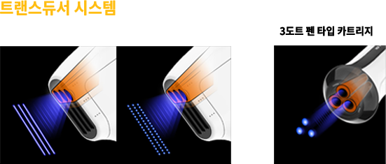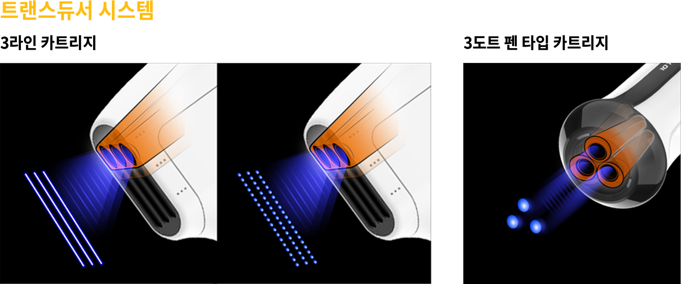 3개의 트랜스듀서가 동시에 작동하여 3라인 또는 3도트를 한 번에 조사함으로써,