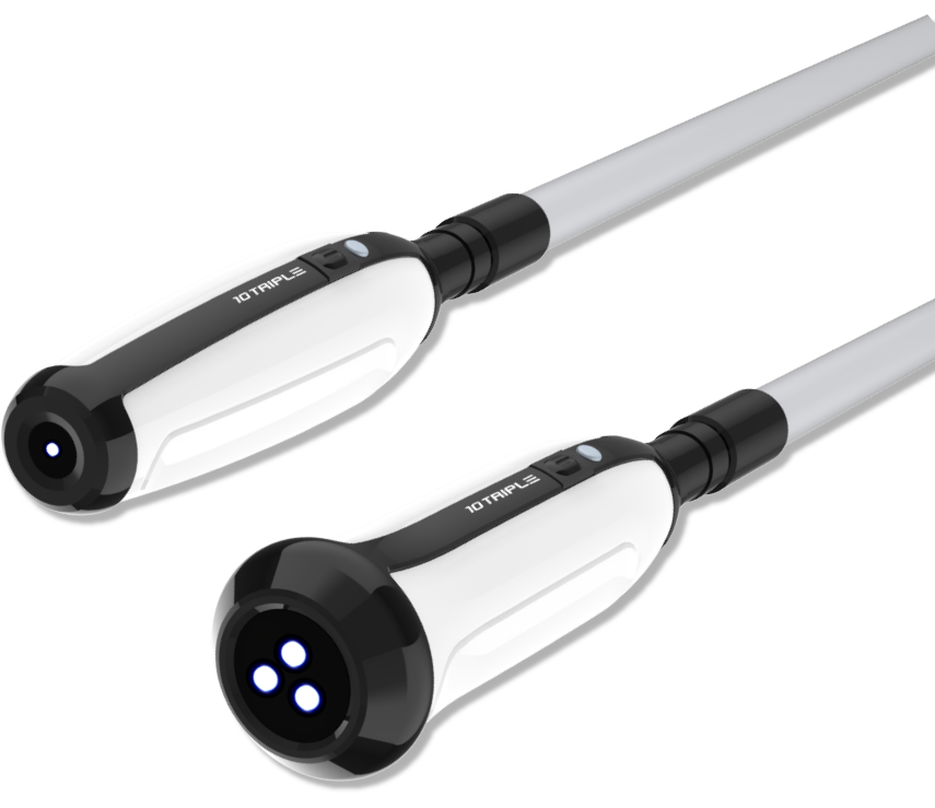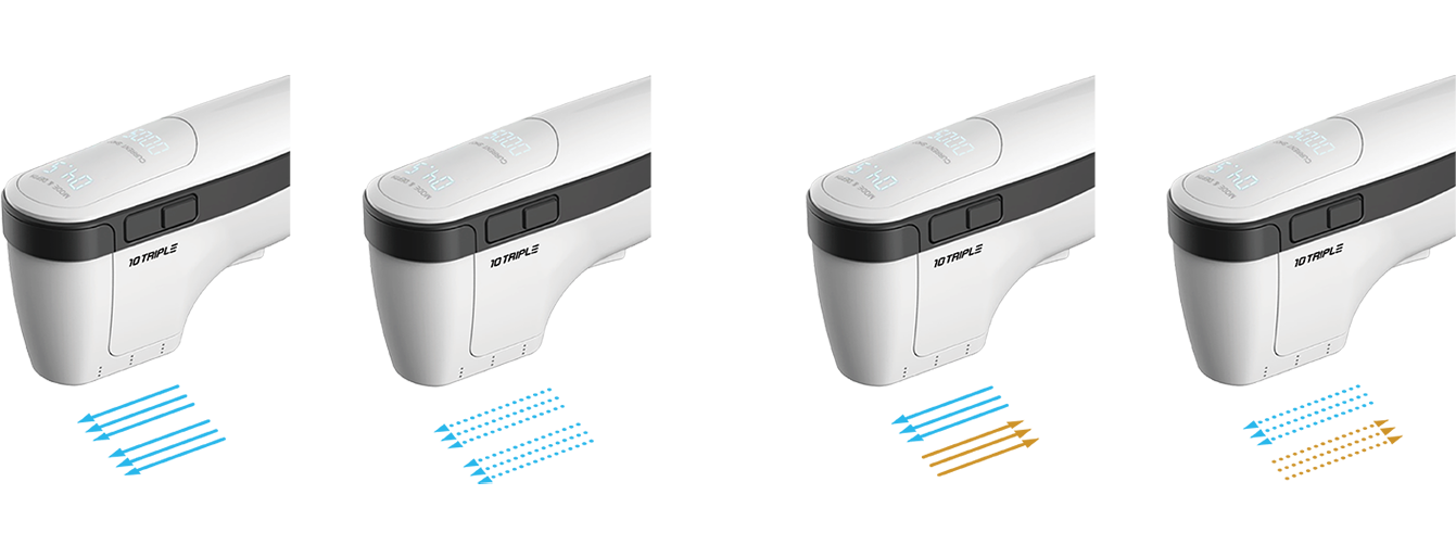3개의 트랜스듀서가 동시에 작동하여 3라인 또는 3도트를 한 번에 조사함으로써,